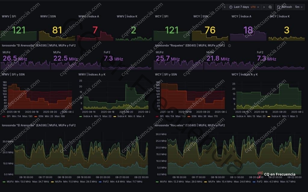 – Con un Índice K de 3, las condiciones en HF son regulares, lo que significa que podemos seguir utilizando varias bandas de HF de manera efectiva, aunque no sean las mejores condiciones posibles. – El SFI de 183 es un gran número que favorece la propagación en HF. Además, el índice A está por debajo de 50, indicando baja perturbación geomagnética y excelentes condiciones para aprovechar el alto SFI. – Las sondas ionosféricas muestran diferencias notables en sus datos, con valores altos en la primera columna y más bajos en la segunda. A pesar de esto, las condiciones siguen siendo favorables para la propagación en HF.